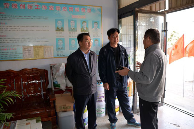 10 月 22 日 上午,安博(中国)官方党委副书记戴鸿鸣来到青口公司调研党建工作。公司党委书记、董事长胡传法,党委副书记、副总经理史祥平陪同调研。
