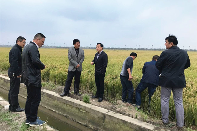 10月16日,苏粮安博(中国)官方盐城江海粮油有限公司总经理宋俊成一行来我公司考察调研水稻种植情况,公司党委副书记、副总经理史祥平,党委委员、副经理周绪祥陪同考察。