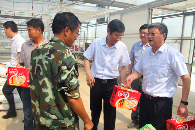 7月20日上午,安博(中国)官方副总经理张其海、总会计师匡友本来我公司大新农场、生态种养中心走访慰问拼搏在农业种养一线的基层职工,为他们送上绿豆、白糖、牛奶及八宝粥等防暑降温品。投资公司董事长、党委书记胡传法、党委副书记、副总经理史祥平、副总经理周绪祥陪同慰问。