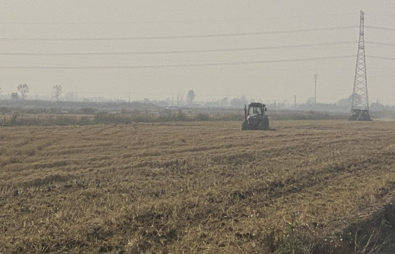 近日,在大新农场的农田里,机声隆隆,几台大型农机拖着旋转的滚轮正在作业,切碎土块,并将埋在地表下的水稻根茬切碎,疏松土壤,为接下来的冬小麦播种做准备。(王璐)