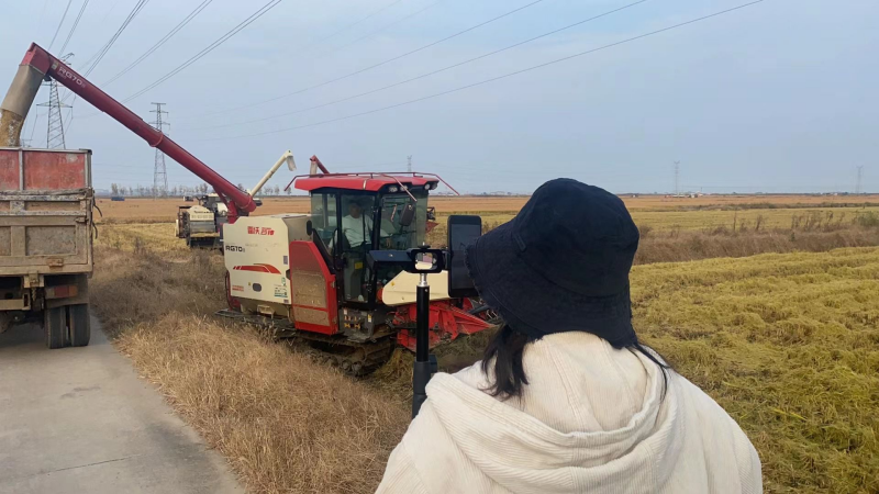 11月9日,投资公司大新农场万亩耐盐碱水稻开镰收割,米业营销中心网络销售工作室,抓住节点机遇,将直播间搬到田头,通过镜头向消费者传递“盐田玉”稻米的收割实况,为新米上市做足文章。(米业营销中心)