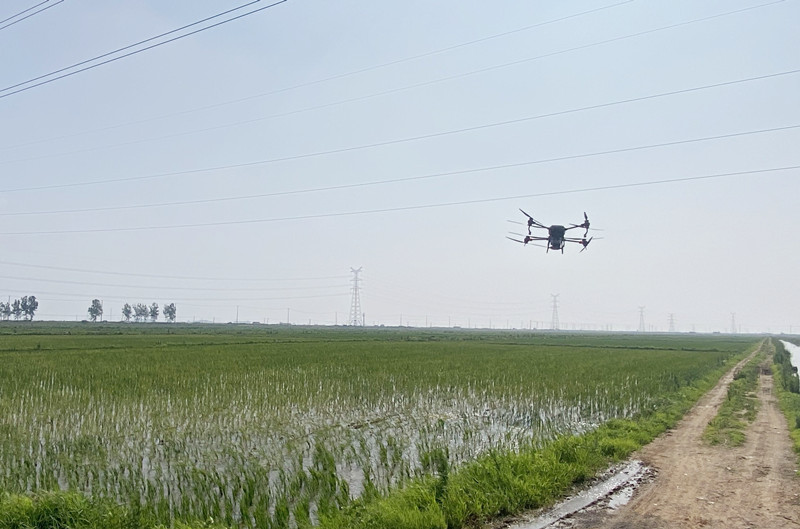 近日,大新农场采用无人机适时开展追施返青肥,每天每台施肥约400亩,节约人工成本,且喷洒均匀,保证水稻秧苗移栽后能够及时返青,促进秧苗早分蘖。(大新农场)