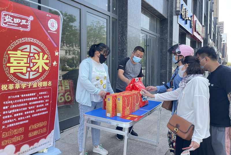 又是一年高考季,米业营销中心抢抓“升学宴”商机,到赣榆区各考点开展“盐田玉”喜米宣传活动,走近学生家长,为考生加油。同时,通过现场介绍、发放宣传页、关注抖音号等形式,为“升学宴”用米打好前战。(米业营销中心)