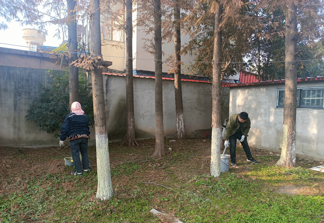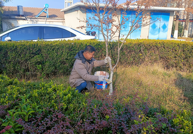 泰祥公司对场区绿化树木越冬进行 “涂白”