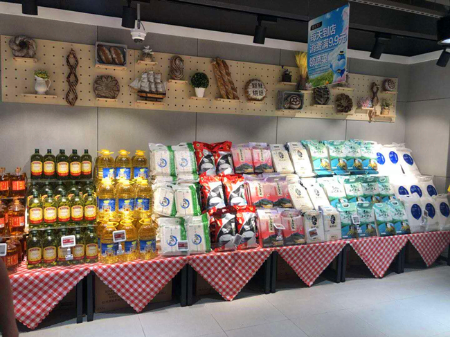 近期,米业营销中心把销售瞄准南京市场,通过与南京秦邦吉品农业开发有限公司合作,进军新零售市场,首批2.5公斤和5公斤白真空包装的“盐田玉”大米已摆上南京盒马超市的货架,南京市民可以吃上绿色“盐田玉”大米。(米业营销中心)