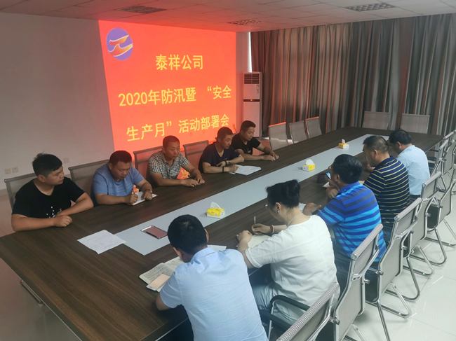 为贯彻落实青口投资公司防汛暨“安全生产月”活动会议精神,6月3日下午,泰祥公司组织全体人员召开2020年防汛暨“安全生产月”活动部署会。