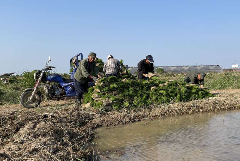近日,为保障水稻移栽有序进行,在仓储中心田间地头,支部党员职工齐上阵,解决农忙时节劳动力紧缺问题,让党旗飘扬在田头。(王 伟)