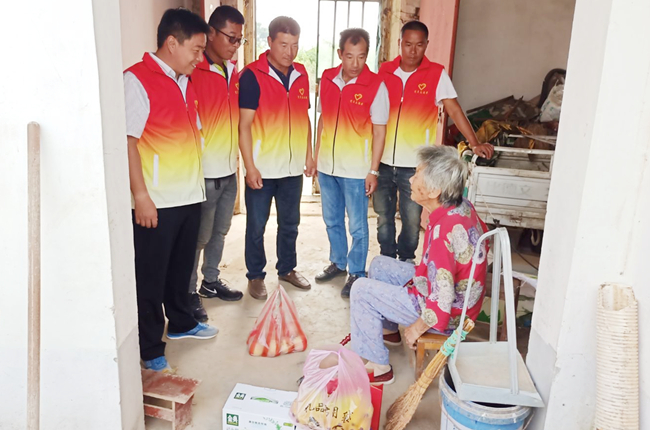近日,三洋分场党支部开展“奋楫争先开新局 奋战百日夺首胜”主题党日活动,组织党员志愿者到十三圩九旬老人葛树英家义务收花生、打扫卫生,并为老人购买月饼、鲜奶、水果等慰问品,为老人送去组织关怀。