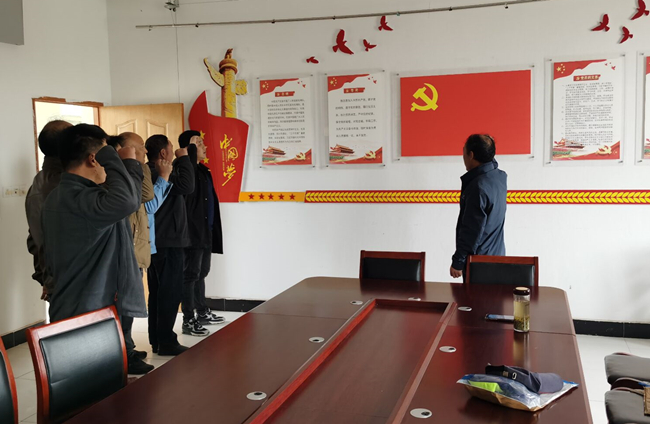 会前,全体党员干部进行了重温入党誓词活动。(大新农场党支部)