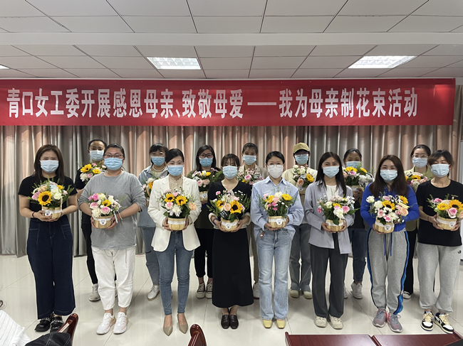 花香四溢,感恩母亲。5月6日下午,青口公司工会女工委举办了“五月康乃馨 爱心献母亲”主题活动庆祝母亲节,致敬母爱。