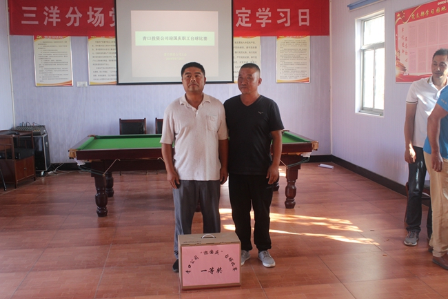 台球初赛采用三局两胜淘汰赛制,抽签决定比赛对手和上场顺序,第一轮胜出者进入下一场比赛,前四名选手进入决赛。本次共有32名选手报名,参赛队员虽然都是业余爱好者,但每名参赛选手态度非常认真,台球桌前,他们不停地走动寻找最佳击球点,架杆、出杆、撞球、落袋,过程紧张而激烈,博得观众阵阵掌声。经过多轮角逐,服务中心张建军获本次比赛的冠军,大新农场徐振涛、候玉刚及服务中心张根林获得二等奖。