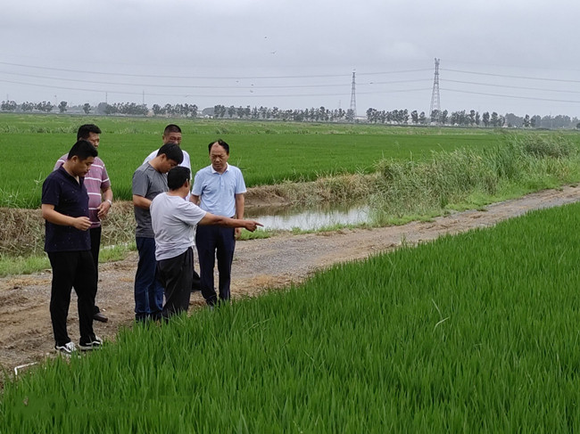 管理人员和农技师深入田间地头,对安博网页版基本苗的苗情苗量、病虫害情况进行水稻中期生产检查,对下一步的水浆管理和病虫害防治提出指导意见,要求早防早治,适时搁田。
