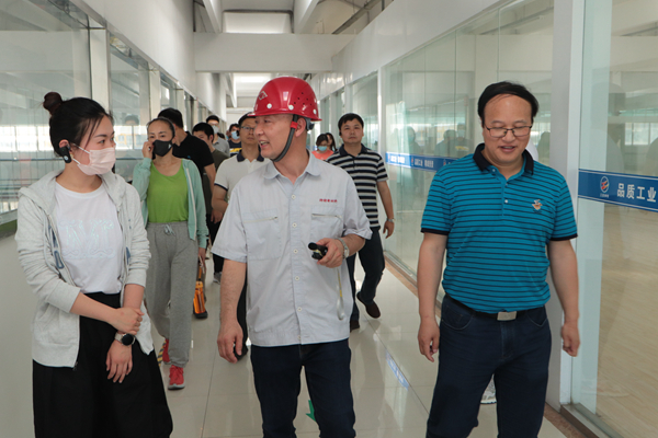 公司总经理韩立新陪同全国纺织复合人才培训工程高级培训班专家一行参观了企业文化宣传栏、生产线等地,为专家们讲解了公司发展历程、产品种类、生产经营等情况。