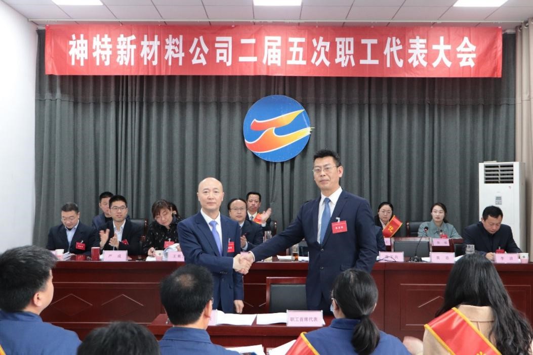 42日上午,公司召开二届五次职代会,来自各条战线的47名职工代表以高度的责任感和主人翁精神履行职责,共商神特发展大计。公司董事长张斌作讲话,总经理韩立新作《工作报告》。工会主席袁忠主持了会议。