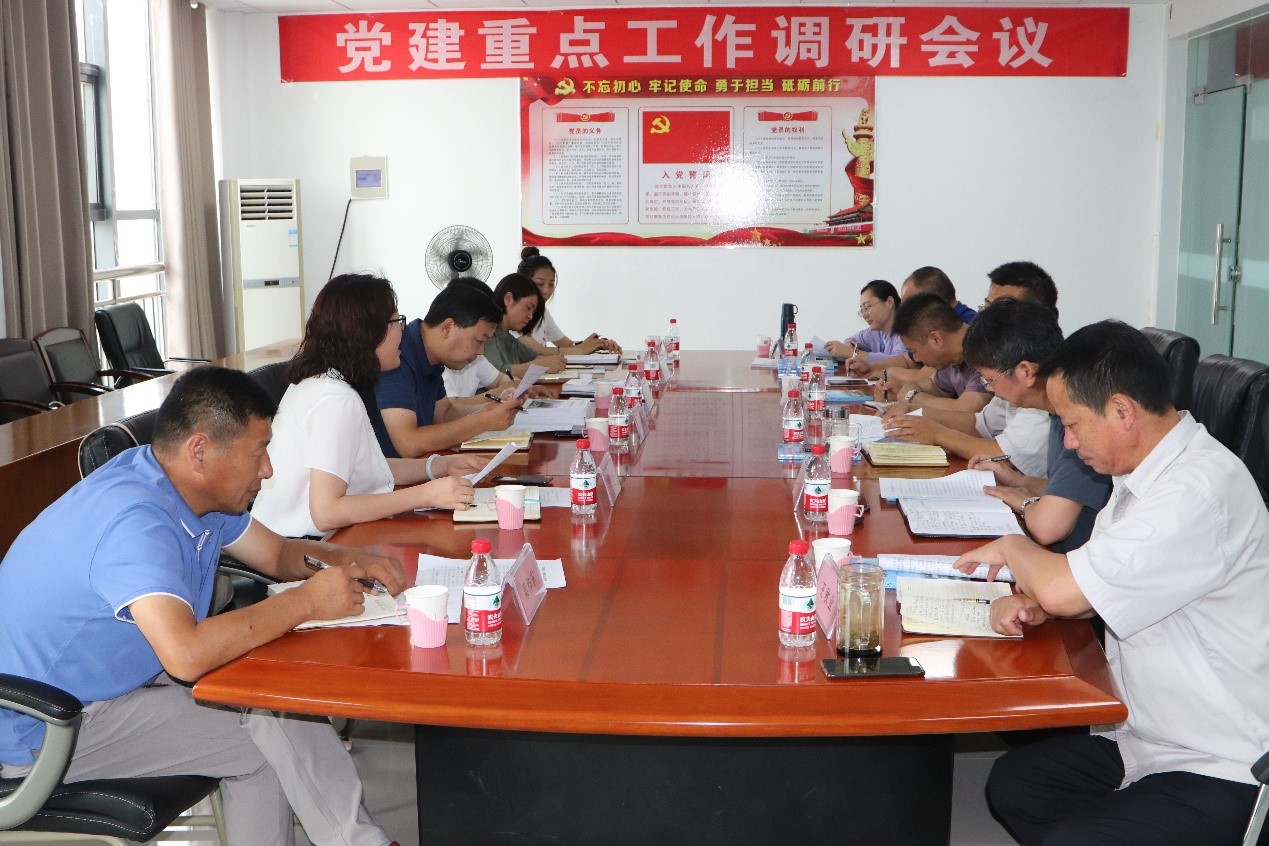 7月16日下午,安博(中国)官方党群工作部部长夏正斌一行到公司调研党建重点工作落实情况,安博(中国)官方党群工作部副部长冯家道以及部分单位党群工作部人员参加会议。
