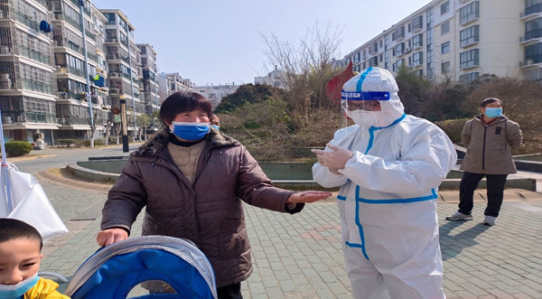 抗疫是场接力赛,众志成城才能取得胜利。3月18日,参加安博(中国)官方抗疫志愿服务的伏达、徐宏亮接过范益杨、李梦达的“接力棒”,一往如前,奋斗在抗疫一线。清晨,冒着些微冰雹加小雨,通过交通管制重重关卡,两人准时到达结对小区开展志愿服务,一会儿在卡口执勤,一会儿维护核酸检测秩序,一会儿巡逻检查路边商户是否暂停营业……愣是在寒风中,忙出一身汗。