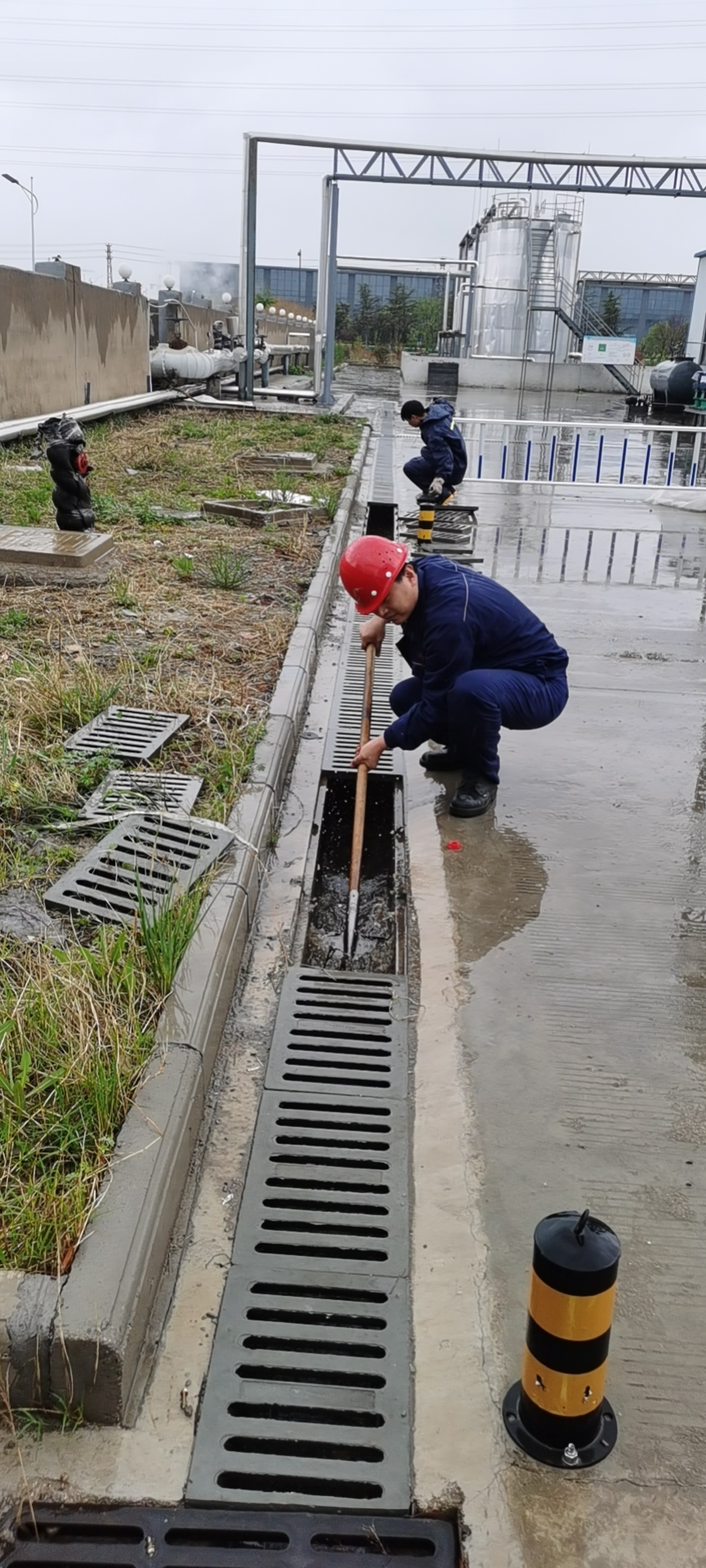 这次主要针对罐区、泵房、前纺、主干道路等周边排水沟集中清理。员工认真清理排水沟内淤泥、垃圾、树叶杂物,不怕脏、不怕累,一锹锹的把淤泥清理出来,衣服被雨水淋湿也浑然不知,鞋子和裤腿沾满了泥水也毫不在乎。经过大家的合力协作,排水沟很快清理干净,及时消除了汛期安全隐患。
