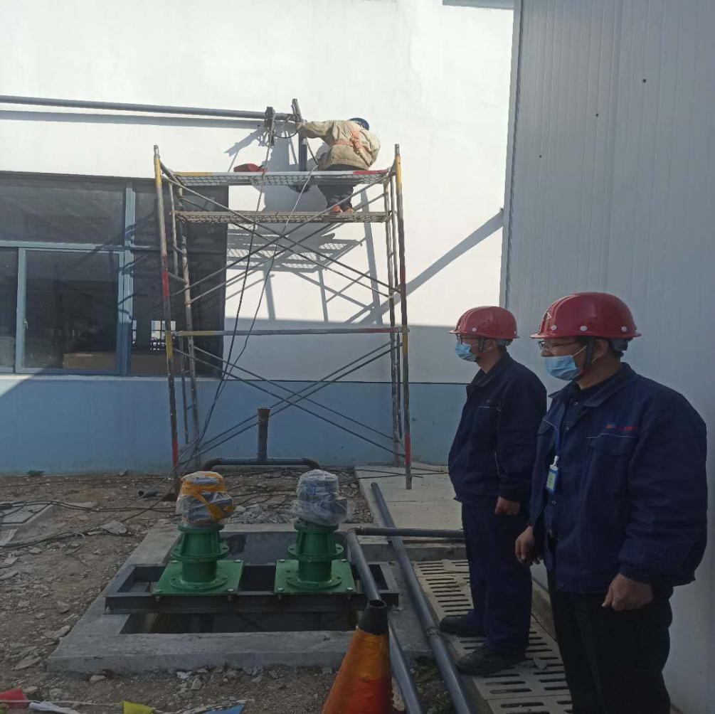 在施工过程中,技术中心工程师韩善信、生产设备部部长助理郑兆军现场做技术指导。安全管理部开具30余份现场作业证,并做好现场监督管理,确保施工人员严格遵守工作流程,安全有序进行施工。