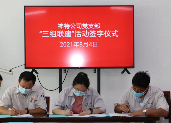 8月4日上午,公司举行“三组联建”活动签字仪式,党小组、生产班组、工会小组的组长参加活动。活动由公司党支部副书记袁忠主持。