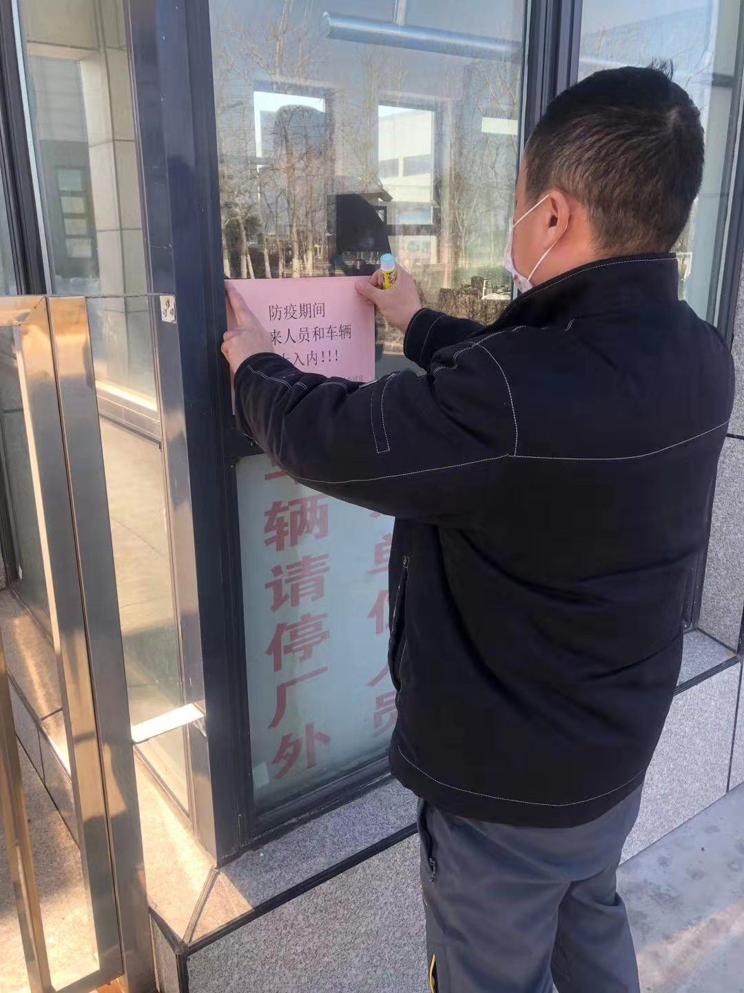 “走马上任”后,李洋同志坚持“守土”有责、担责、尽责,立即进入忘我工作状态。一方面,安排采购测温仪、口罩、消毒液等防护用品,部署生产车间与办公区域的清洁与消毒工作;一方面,制订公司人员情况登记表、外来人员情况登记表、节日值班人员身体及体温情况登记表,严格管控人员进出厂区,进行体温检测,及时掌控人员去向,实现一日一报。针对出连、来连亲属和与疑似确诊病例接触人员,每日重点追踪排查。除此之外,利用微信工作群、宣传栏普及防疫知识,向员工发放防疫倡议书,营造浓厚氛围。