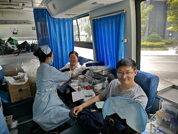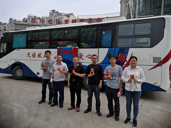 5月14日下午,我公司7名志愿者来到昌圩社区党群服务中心进行无偿献血。经过仔细检查,最终有6名志愿者符合献血条件,一共捐献了1600ML血液,为社会奉献了点滴爱心。(神特宣)