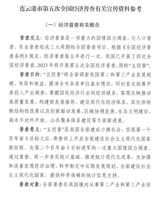 连云港市第五次全国经济普查宣传公告