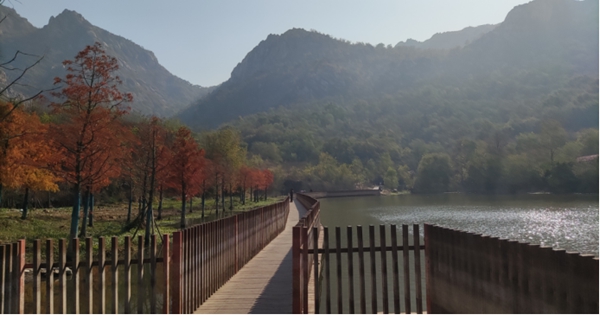 斗转星移,山河已变,五百年前诗人所描述的风景安博网页版无法再欣赏到,但是现在的园林水库更有一番风采。火红的水杉是她最引人注目的特色之一,寒风掠过,水杉的叶子也逐渐变成了鲜艳的火红色,犹如一片片燃烧的火焰,在寒冷的季节中增添了一抹暖色。徜徉于火红的水杉林,阳光下树影婆娑,宁静,安逸,沉醉于诗画中。波光粼粼的湖水更是一幅美妙的画卷,清澈透明,水草摇曳,微波荡漾,游鱼穿梭,仿佛寒冷与它们无关。栈桥娴熟地穿越着园林与水库,一直连接到山脚,行走其上,脚下水光潋滟,眼前层林尽染,晴空之下无一丝尘埃,啾啾鸟鸣,沙沙叶响,哗哗水流,大自然的乐章欢快静谧。