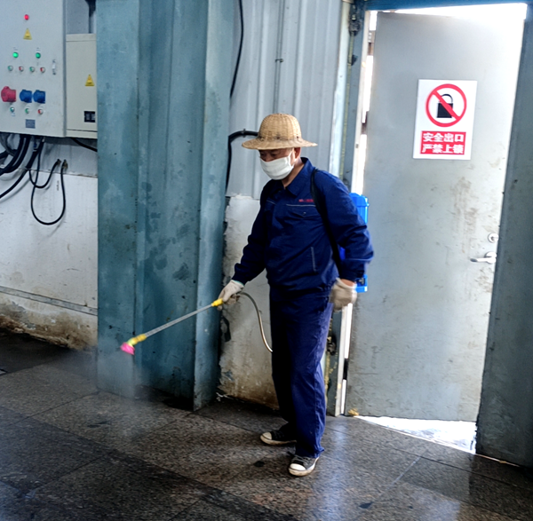 丁师傅了解到这个信息后,利用休息时间,主动请示领导,背着沉重的药桶,裹着厚衣服,为单位绿化带、车间内部和包装区域进行打药,沿途受到一线员工的热情欢迎,甚至“主动”邀请老丁到他们的工作区域“转转”,帮忙打药,员工苦蚊子久矣。老丁戴的草帽是以前负责打药的葛师傅的,所以大家笑着说“老葛回来了”。一个上午,老丁就打了三桶药,大家也叮嘱他,好好洗个澡,防止皮肤受到药品伤害。