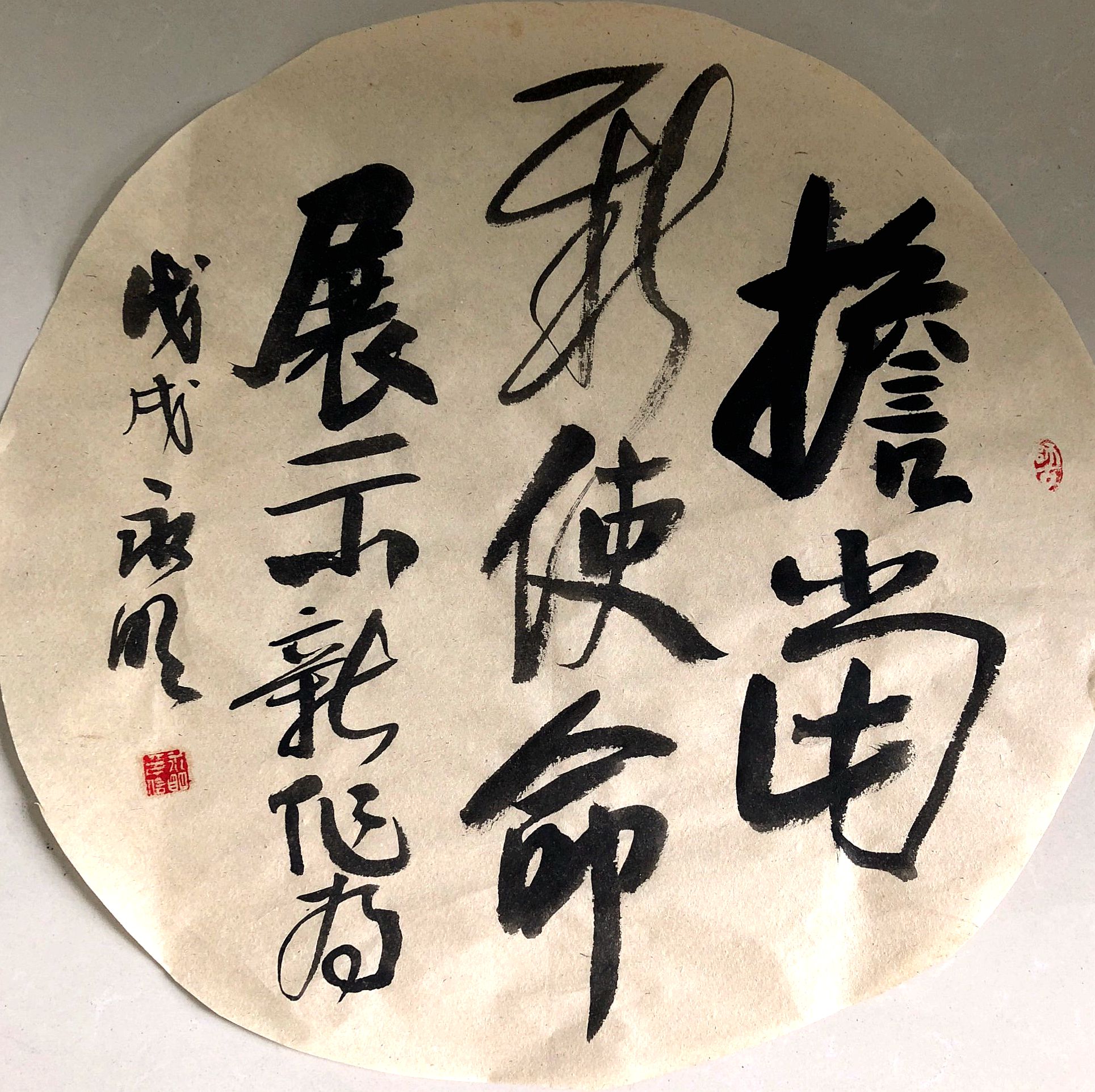 职工陈永明书法作品《担当新使命,展示新作为》