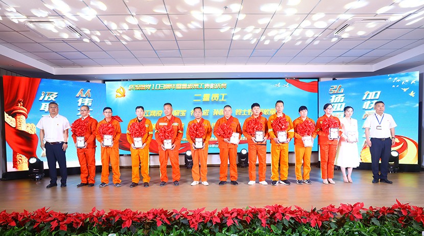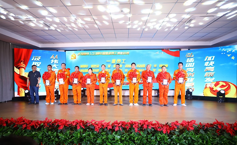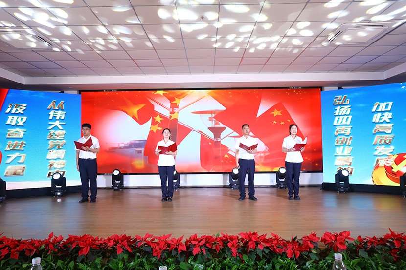 演出中,陈大壹、宋思雯、闫佳俊等十名新发展的中共预备党员和新老党员代表进行了现场宣誓,并合唱《我宣誓》。对公司党委评选出的星级员工进行表彰,并对三星级员工进行了专访。