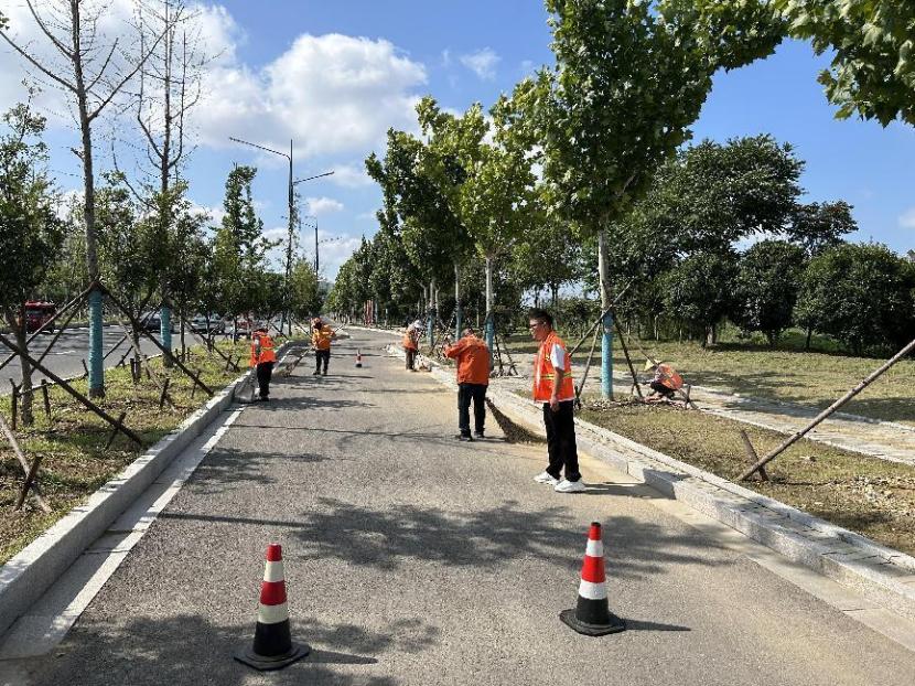 保障园区“塑新颜”。节日期间,开发区辖区的主干道上、公园、广场、支路等公共绿地,随处可见台北(华茂)绿化养护人员坚守一线的忙碌身影,他们放弃与家人团聚,重点对玉竹路、佟圩路、银台路、242 省道等路段绿篱、模纹、草坪进行整形修剪,对碱厂南路等路段绿化带内低矮乔灌木进行打药治虫,对展览中心、黄海大道等辖区内及时清理绿化带杂草、捡拾草根、干枝等绿化垃圾,保持绿化带干净整洁美观。益丰园林分公司绿化班全员放弃节日休假,外拓市场,与绿化分公司联动赴徐圩消防大队院内开展突击修剪行动,他们不怕脏、不怕累,共修剪灌木球50余棵,灌木丛7000余平方米。