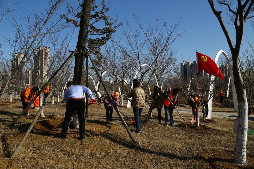 活动期间,公司党委组织开展了“打树围”党员实践劳动活动。广大党员们分工合作、配合默契,干劲十足,发扬不怕苦、不怕脏的精神,将创智绿园内树木周边翻耕、除草、“打树围”,活动现场热火朝天,大家在活动中主动戴党徽,冲锋在前做表率,让党旗在一线高高飘扬。