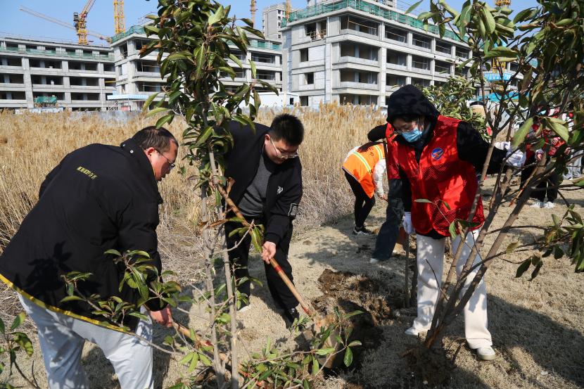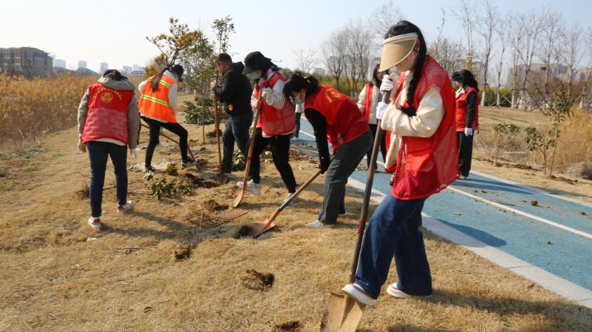 植一抹新绿,寄一份希望。活动现场,大家干劲十足,充分发挥“奉献、友爱、互助、进步”的志愿精神,积极投身到义务植树实践活动中,纷纷撸起袖子,你挥锹挖坑,我扶苗培土,汗往一处流,劲往一处使,大家分工明确、配合默契,将一棵棵树苗稳稳栽好,一派忙碌有序的劳动景象。经过一下午的辛勤劳动,一棵棵小树苗昂然挺立,为美丽的昌圩湖公园增添丝丝绿意,带来勃勃生机。