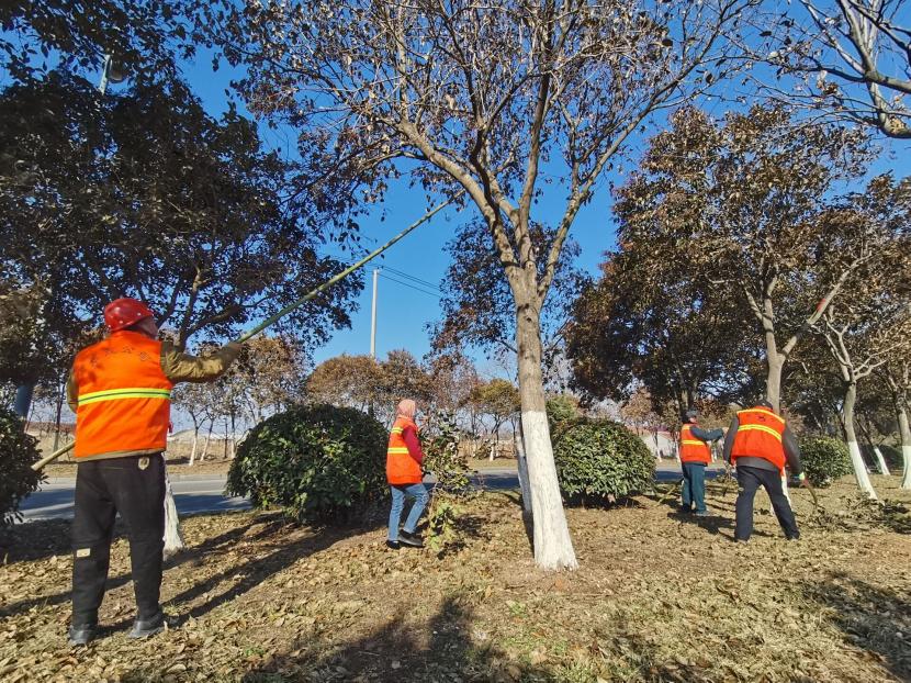绿化养护抢抓春风。一二月份,绿化分公司抢抓春风,加班加点,按计划戮力推进乔木与花灌木的修剪修剪掉枯枝、死枝、烂枝,促进苗木更好地生长。组织人员对辖区的游园、主次干道等重点区域开展枯枝烂叶的清理,消除冬季落叶带来的安全隐患,有效减少落叶积存,确保辖区环境优美整洁。