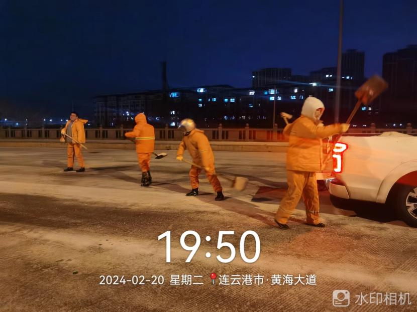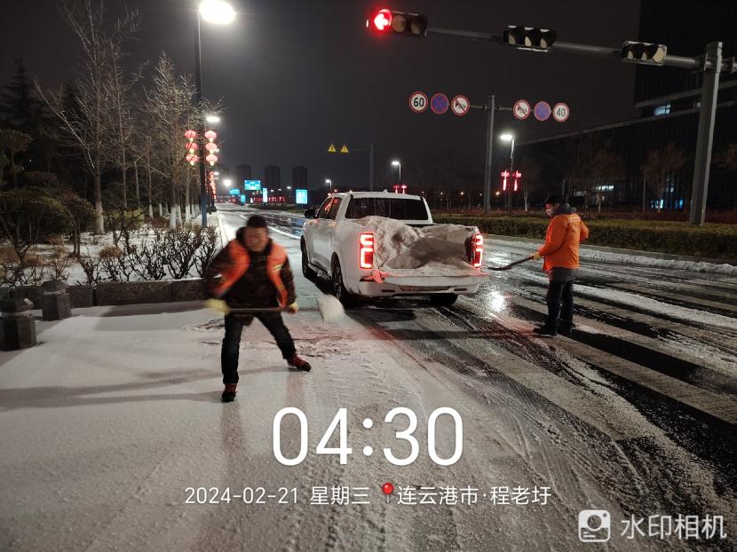 220日晚,港城迎来又一轮降雪,低温雨雪冰冻天气对城市道路交通和市民出行产生较大影响。为确保雪天道路畅通及市民出行安全,绿化分公司闻雪而动,219日晚开始,组织应急队伍连夜行动,在花果山大道、黄海大道等开发区主干道融雪剂,开展清雪除冰工作,掀起一场齐心协力、团结互助的战风雪保通畅行动。