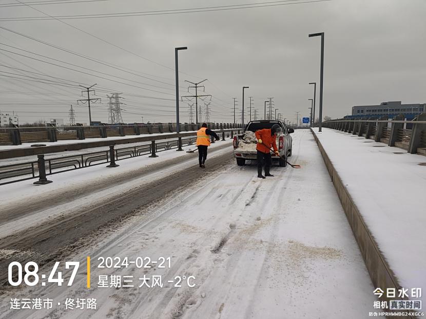 本次除雪采取随降随清、连续作业的方式,及时、快速清理路面积雪,同时根据积雪厚度,采取撒融雪剂、推雪以及人工配合等多种除雪方式进行紧急除雪除冰作业。