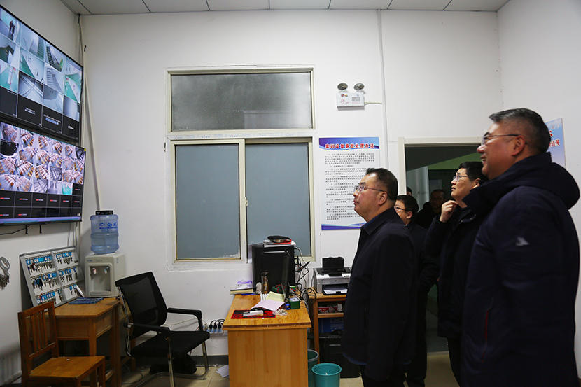 1月31日下午,安博(中国)官方公司党委副书记戴鸿鸣安全检查组一行,冒雨到投资公司开展节前安全检查,公司党委书记、董事长、总经理王德志,安环部部长李明等陪同检查。