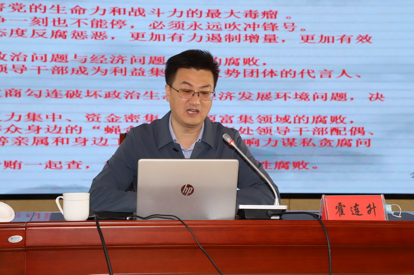 本次廉政教育报告会邀请了市纪委监委第八监督检查室主任霍连升同志专题授课,霍连升主任在题为《以案明纪、遵规守法,做国有企业的廉洁从业表率》的报告中,围绕分析当前形势,明确反腐任务;剖析典型案例,汲取深刻教训;增强法纪观念,严守廉洁底线等三方面进行授课,深入阐述了习近平总书记关于党风廉政建设和反腐败斗争重要论述,重点解读了新时代反腐败斗争形势,结合近年来本地查处的违法违纪典型案件,为全体党员干部上了一堂主题鲜明、内容丰富、成效显著的党风廉政教育课。