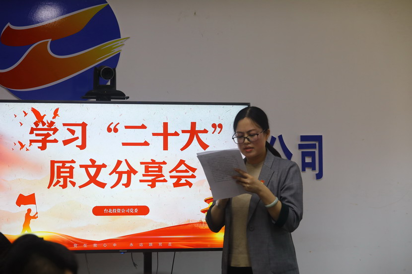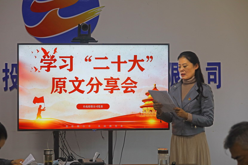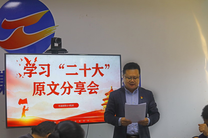 1021日,台北投资公司党委组织召开党的二十大报告学习交流会,每位同志阅读报告原文,针对报告内容结合工作实际,分享心得体会、畅谈工作思路、谋划未来发展。