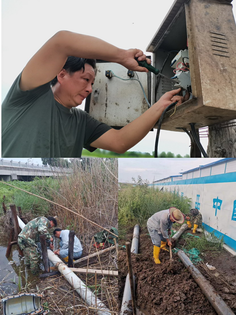 先锋泵站,程辉师傅撩起工作服擦了擦脸上的汗水,继续将潜水泵安置到已废弃的滩地里,把滩地里的雨水抽干,将废弃的滩地利用起来晾晒低浓度的钙液,解决销售旺季成品钙液供不应求难题。