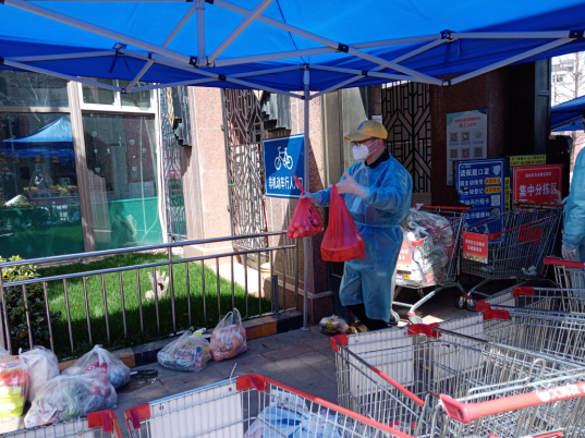 “大爷,您好,拿什么菜?”早上8点,海州防疫临时党支部的江海凌同志开始一天的志愿服务。不过,他今天“改行”了,不再是信息采集员,而是化身邻居菜篮子的“守护者”。