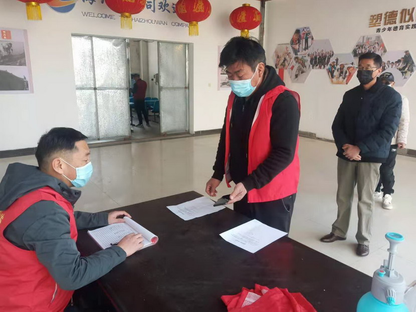 设置党员先锋岗,筑牢防疫堡垒。在这疫情防控紧要关头,海州湾党支部广大党员挺身上前、冲锋在前,全力以赴、严防死守。分别在海滨、先锋、公司办公区以及两个钙液发放点分别设置党员先锋岗,负责来访人员体温登记,查看核酸检测证明、苏康码以及行程码,并宣传疫情防控政策、防控措施和科普知识,坚持把党旗树起来、党员身份亮出来,自觉投入到疫情防控各项工作中,全面落实联防联控措施,构筑群防群控的严密防线,坚决打赢这场疫情防控阻击战。