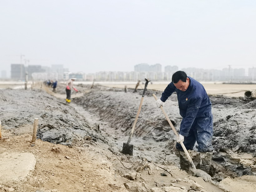 近日,迎着初春的风走进昌圩班组,在印有醒目“开局就是决战,起步就是冲刺”的横幅下,退休党员朱春年正带领职工撩沟做堰,更换结晶池塑料布等。两鬓斑白的朱组长士气毫不减当年,一边忙一边说:“昌圩结晶池因滩工撂荒较严重,冬准工程量大,为了能完成公司冬准计划,安博网页版把海滨、程圩职工都抽调过来了,过年都在干活,目前这边1000亩结晶池已经完成,春节期间灌了一部分,现在天时好,安博网页版得抓紧时间,早灌池,早落盐!你们自己转转、看看吧,我实在太忙了····”。