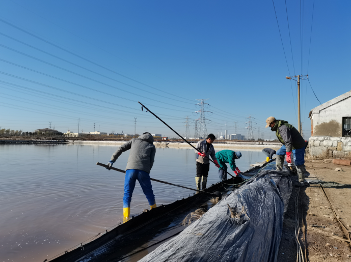 海州湾公司的矿卤盐升级改造续产工程现场,工人们干得热火朝天,十分起劲。修复塑池工序复杂,劳动强度大,知悉此情况后,公司党委组织安排各支部党员职工轮流至海州湾公司助力修滩。现已完成先锋班组结晶池池埝修整7块,2240米,拆分浮板晾晒200米。