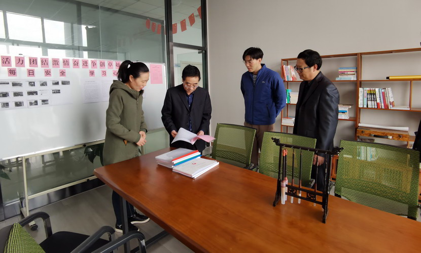 调研组一行着重查看美多利公司三组联建室,听取相关汇报,同时现场查看三组联建相关台账。