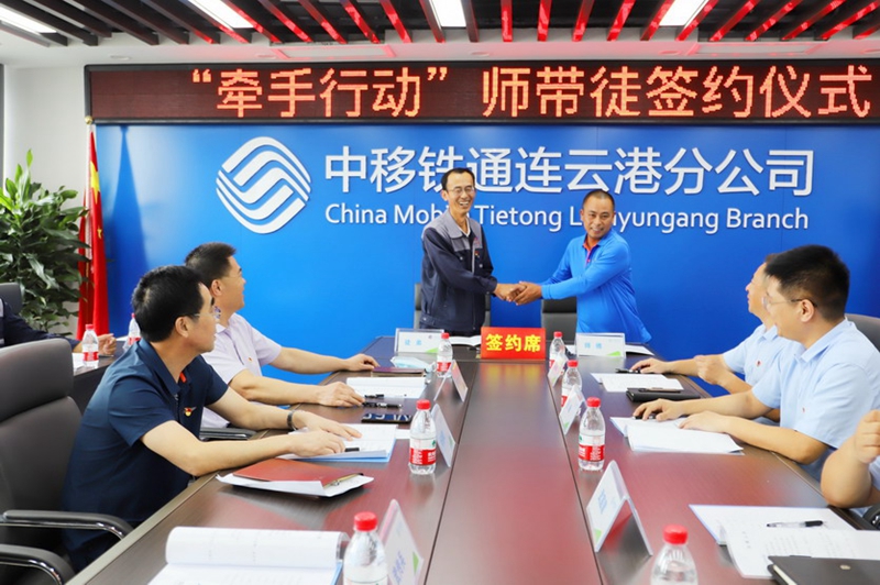 学——拜师学艺练队伍。在与中移铁通顺利达成战略合作后,投资公司“马不停蹄”地“招兵买马”,一支高素质、能吃苦、敢担当的通讯工程小队迅速集结完毕。随后通过与中移铁通师带徒的“牵手行动”,工程小队向经验丰富的老员工们拜师学艺,快速汲取专业知识,增强自身技术水平,“门外汉”们在实践中学习,在学习中实践,逐渐成长为“行家里手”。