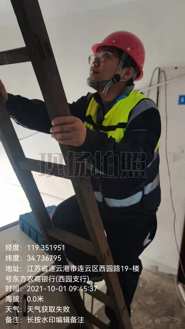 连云区西园路上,“爬杆队”通讯工程小组的成员们忙碌着调试设配,为千家万户的讯息通畅默默奉献着。