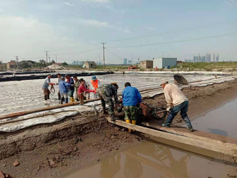 海滨大八组,老盐工们移动大架,搬运管道,调试机器,开始一年一度的秋季生产。