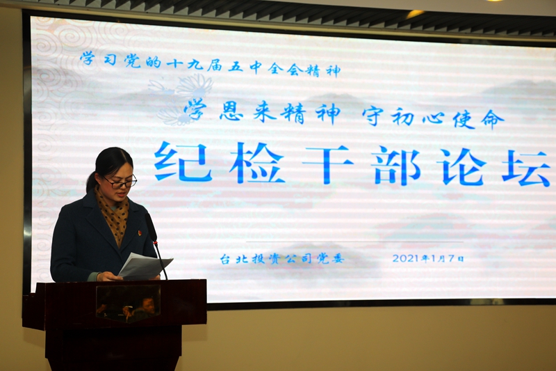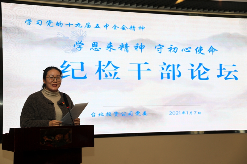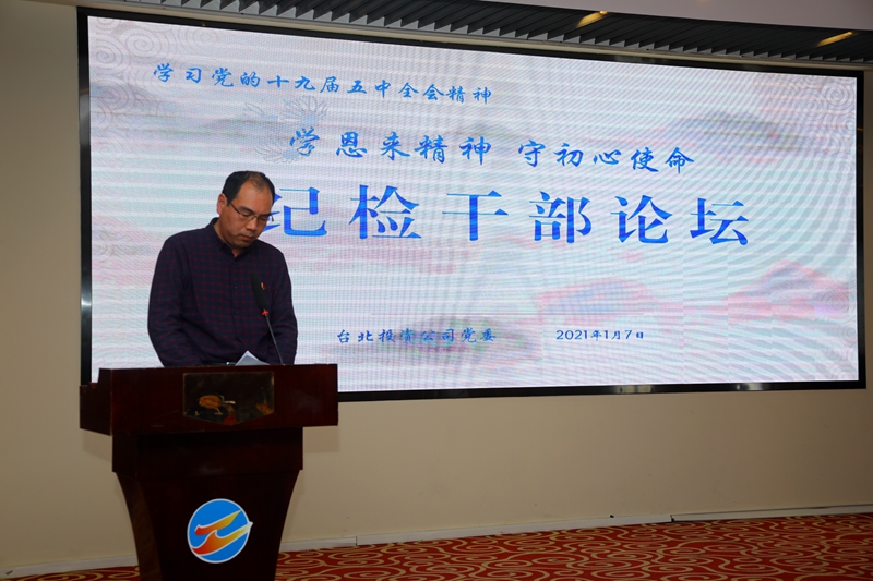 “感受伟人风范,践行初心使命……”从台北投资公司十楼会议室里传来铿锵有力的演讲声。为深入推进“学恩来精神、守初心使命”专题教育活动,锻造忠诚干净担当的纪检干部队伍,1月7日下午,公司举办纪检干部专题大讲堂。公司领导班子成员,各单位、部门中层副职以上管理人员参加了活动。
