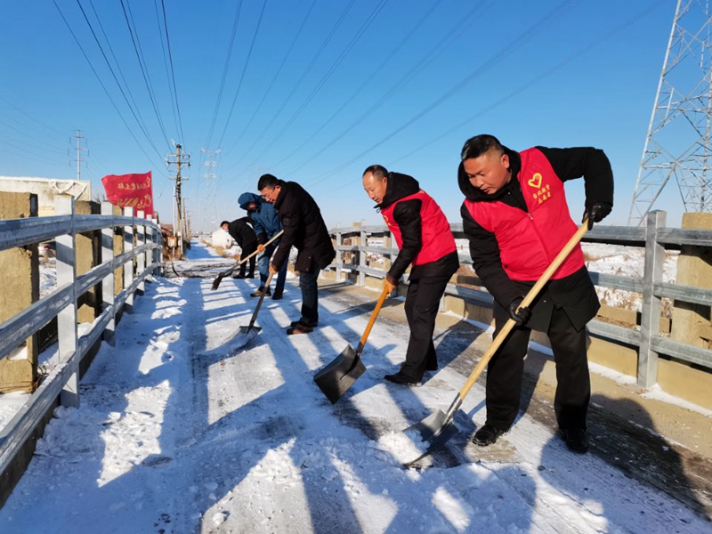 冷冽的寒风中,党员先锋队、青年突击队、巾帼突击队冲锋在前,有序地清理道路、生产现场、商户门口等地方的积雪。大家有的挥舞铁锨,铲冰除雪;有的手拿扫帚,清扫路面。道路以及进出口的积雪情况得到缓解,及时保证了道路安全畅通,传递了一份温暖和正能量,也充分体现了党员干部的先锋模范作用。